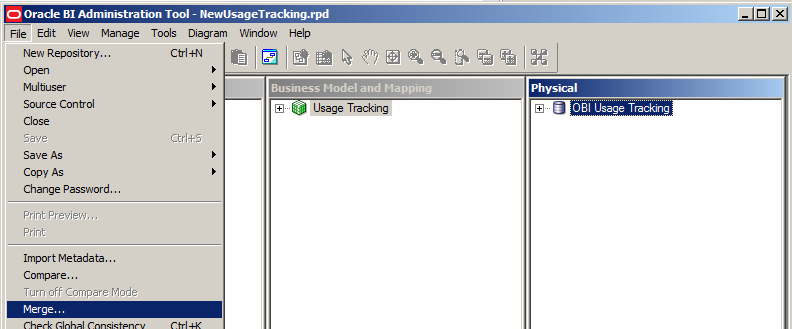 tracking repository start by taking a copy of the usage tracking RPD. This is